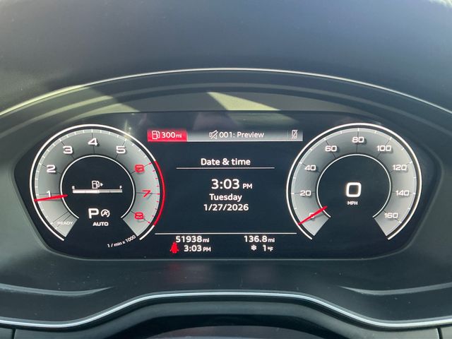 You can't buy the wrong vehicle at Valley Pre-Owned! Check out the rest of the great features on this car. 10 Speakers, 4-Wheel Disc Brakes, ABS brakes, Air Conditioning, Alloy wheels, AM/FM radio, Anti-whiplash front head restraints, Audi smartphone interface with Apple CarPlay, Auto High-beam Headlights, Auto-dimming Rear-View mirror, Automatic temperature control, Brake assist, Bumpers: body-color, Compass, Delay-off headlights, Driver door bin, Driver vanity mirror, Dual front impact airbags, Dual front side impact airbags, Electronic Stability Control, Emergency communication system: Audi connect CARE, Exterior Parking Camera Rear, Four wheel independent suspension, Front anti-roll bar, Front Bucket Seats, Front Center Armrest, Front dual zone A/C, Front fog lights, Front reading lights, Garage door transmitter: HomeLink, Heated door mirrors, Heated front seats, Heated Front Sport Seats, Illuminated entry, Knee airbag, Leather Seating Surfaces, Leather Shift Knob, Leather steering wheel, Low tire pressure warning, Occupant sensing airbag, Outside temperature display, Overhead airbag, Overhead console, Panic alarm, Passenger door bin, Passenger vanity mirror, Power adjustable front head restraints, Power door mirrors, Power driver seat, Power Liftgate, Power moonroof, Power passenger seat, Power steering, Power windows, Radio data system, Radio: Audi Sound System, Rain sensing wipers, Rear air conditioning, Rear anti-roll bar, Rear reading lights, Rear seat center armrest, Rear window defroster, Remote keyless entry, Speed control, Speed-sensing steering, Speed-Sensitive Wipers, Split folding rear seat, Steering wheel mounted audio controls, Tachometer, Telescoping steering wheel, Tilt steering wheel, Traction control, Trip computer, Turn signal indicator mirrors, Variably intermittent wipers, and Wheels: 18" 5-V-Spoke-Y Design.