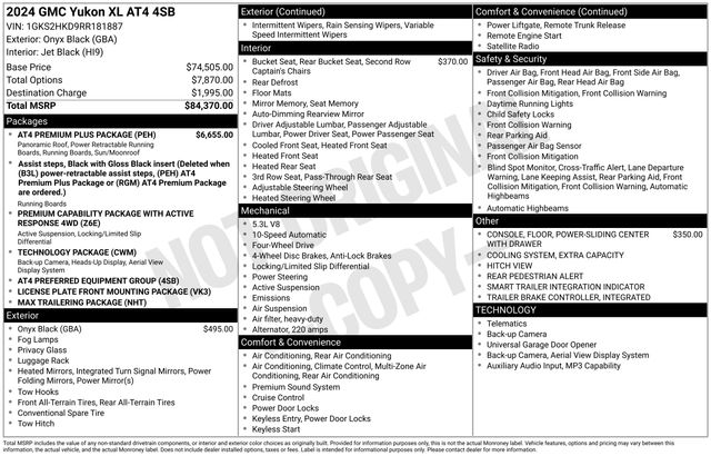 Powered by a robust 5.3L EcoTec3 V8 engine and equipped with 4-wheel drive, the Yukon XL AT4 delivers the performance and capability you demand. With a 10-speed automatic transmission and a 4.10 rear axle ratio, you'll enjoy smooth, responsive power delivery whether you're towing your boat to the lake or navigating winding mountain roads.