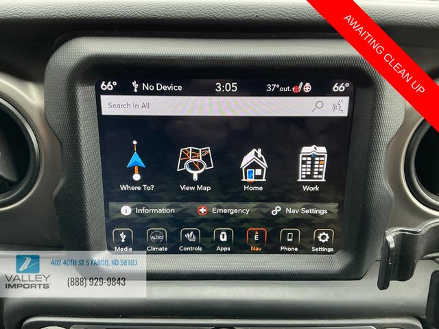 You can't buy the wrong vehicle at Valley Pre-Owned! Check out the rest of the great features on this car. 8.4" Radio & Premium Audio Group (1-Year SiriusXM Guardian Trial, 1-Year SiriusXM Radio Service, 115-Volt Auxiliary Power Outlet, 220 Amp Alternator, 400W Inverter, 5-Year SiriusXM Traffic Service, 5-Year SiriusXM Travel Link Service, Alpine Premium Audio System, Auto High Beam Headlamp Control, Auto-Dimming Rear-View Mirror, Console Bin Task Light, Dual Remote USB Port - Charge Only, Emergency/Assistance Call, For Details, Visit DriveUconnect.com, For More Info, Call 800-643-2112, GPS Antenna Input, HD Radio, Radio: Uconnect 4C Nav w/8.4" Display, SiriusXM Satellite Radio, SiriusXM Traffic Plus, and SiriusXM Travel Link), Auxiliary Switch Group (240 Amp Alternator, 700 Amp Maintenance Free Battery, and Auxiliary Switches), Cold Weather Group (Heated Front Seats and Heated Steering Wheel), Convenience Group (Universal Garage Door Opener), GVWR: 6,250 lbs w/Max Tow Package, Max Tow Package w/4.10 Axle Ratio (4.10 Rear Axle Ratio, Anti-Lock 4-Wheel Disc Heavy Duty Brakes, Anti-Spin Differential Rear Axle, Dana M210 Wide Front Axle, Dana M220 Wide Rear Axle, Daytime Running Lamp System, and Molded-In-Color Fender Flares (2-Piece)), Popular Equipment Package (Black 3-Piece Hard Top, Freedom Panel Storage Bag, No Soft Top, Rear Sliding Window, and Rear Window Defroster), Quick Order Package 24S (Automatic Headlamps, Deep Tint Sunscreen Windows, Front 1-Touch Down Power Windows, Leather Wrapped Steering Wheel, Normal Duty Plus Suspension, Power Heated Mirrors, Power Tailgate Lock, Remote Keyless Entry, Security Alarm, Speed Sensitive Power Locks, Sun Visors w/Illuminated Vanity Mirrors, and Wheels: 17" x 7.5" Tech Silver Aluminum), Safety Group (Blind Spot & Cross Path Detection, LED Taillamps, and ParkSense Rear Park Assist System), Technology Group (7.0" Touch Screen Display, Air Conditioning w/Auto Temperature Control, Apple CarPlay, Cluster 7.0" TFT Color Display, Google Android Auto, Integrated Center Stack Radio, Radio: Uconnect 4 w/7" Display, and USB Host Flip), Trailer Tow Package (Class IV Hitch Receiver, Heavy-Duty Engine Cooling, and Trailer Hitch Zoom), 110 mph Vehicle Max Speed Calibration, 3.73 Rear Axle Ratio, 4-Wheel Disc Brakes, 8 Speakers, ABS brakes, Air Conditioning, All-Weather Slush Mats, AM/FM radio, Brake assist, Cloth Low-Back Bucket Seats, Compass, Delay-off headlights, Driver door bin, Driver vanity mirror, Dual front impact airbags, Dual front side impact airbags, Electronic Stability Control, Front anti-roll bar, Front Bucket Seats, Front Center Armrest w/Storage, Front fog lights, Front reading lights, Integrated roll-over protection, Low tire pressure warning, Normal Duty Suspension, Occupant sensing airbag, Outside temperature display, ParkView Rear Back-Up Camera, Passenger door bin, Passenger vanity mirror, Power steering, Radio data system, Radio: Uconnect 3 w/5" Display, Rear anti-roll bar, Rear reading lights, Speed control, Split folding rear seat, Steering wheel mounted audio controls, Tachometer, Telescoping steering wheel, Tilt steering wheel, Traction control, Trip computer, Variably intermittent wipers, and Wheels: 17" x 7.5" Black Steel StyleD.